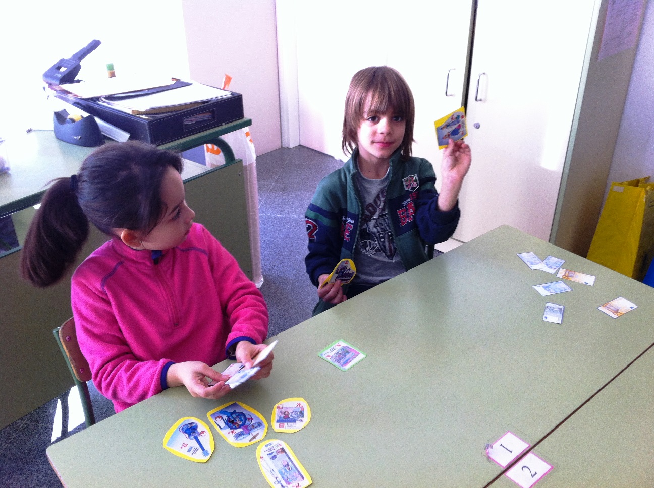 Els nens i nenes de 2n continuem practicant amb bitllets i monedes d'euro.